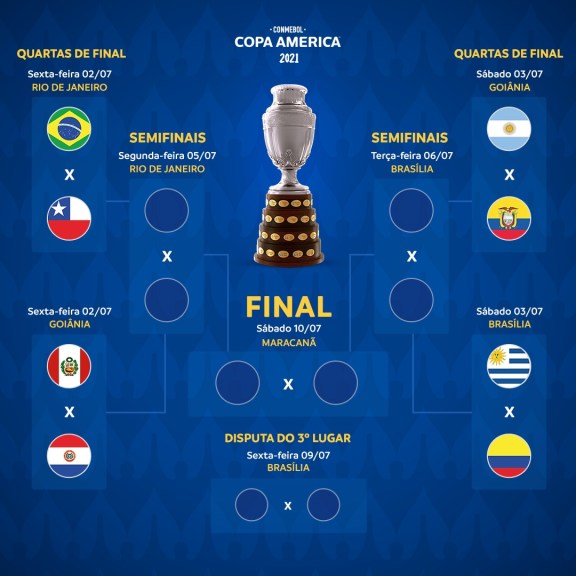 Argentina goleou a Bolívia e o Uruguai superou o Paraguai, definindo os quatro duelos das quartas de final, que começam na próxima sexta-feira (02/7). Restam 8 jogos até se revelar o campeão e a julgar pelos números da competição por enquanto, podemos esperar muita emoção.