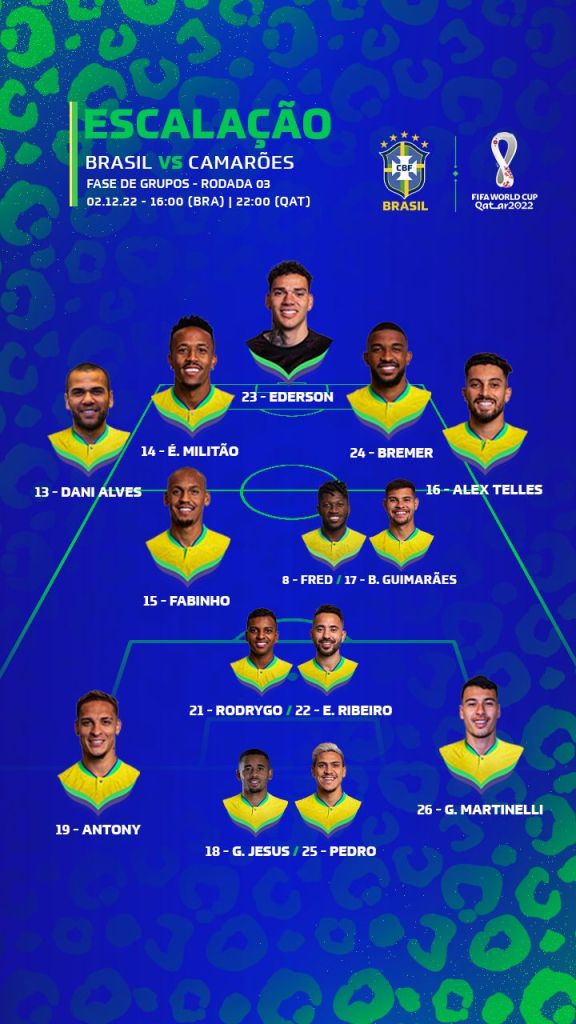 Tite está com medo de perder mais jogadores machucados nessa primeira fase da Copa Qatar 2022. Por isso adianta escalação de uma Seleção Brasileira inteira de reservas no jogo contra Camarões, sexta-feira (02/12).