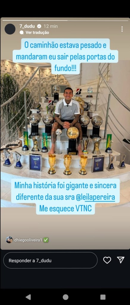 Dudu responde com “Leila Pereira, Me esquece VTNC” na segunda-feira (13/1).