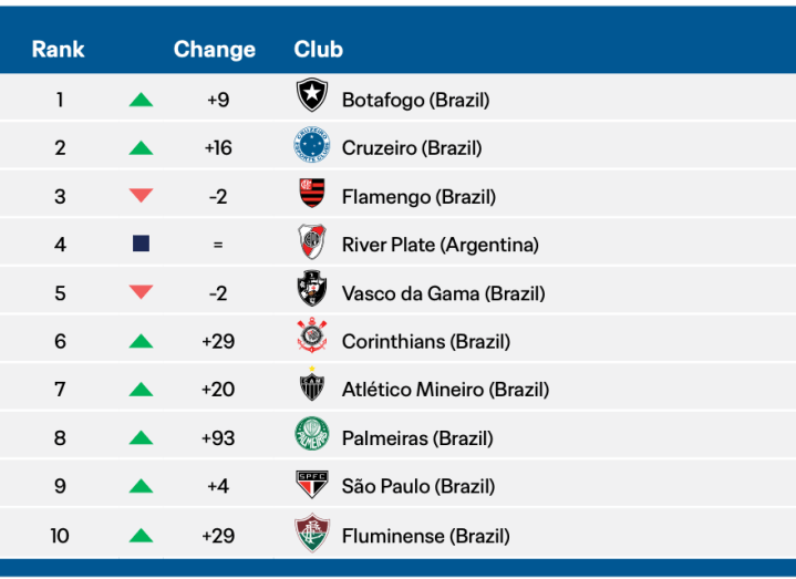 Relatório da Fifa aponta também os 10 clubes que mais gastaram no futebol sul-americano em 2024. Campeão da Libertadores e do Brasileirão, Botafogo lidera o ranking. Flamengo aparece em segundo, e o Cruzeiro, terceiro. River Plate é o quarto colocado em gastos com transferências de jogadores.