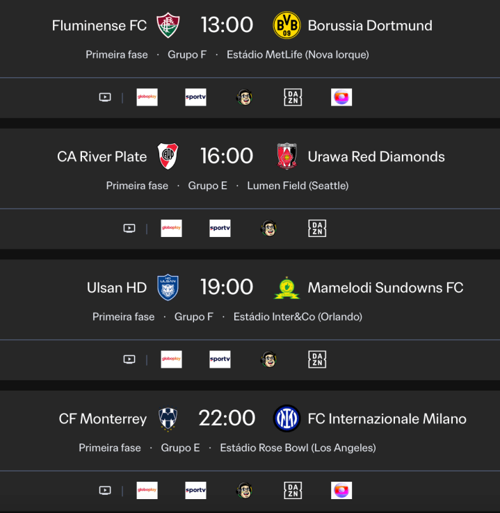 13h – Fluminense x Borussia Dortmund – Globo, Sportv, globoplay e Cazé TV